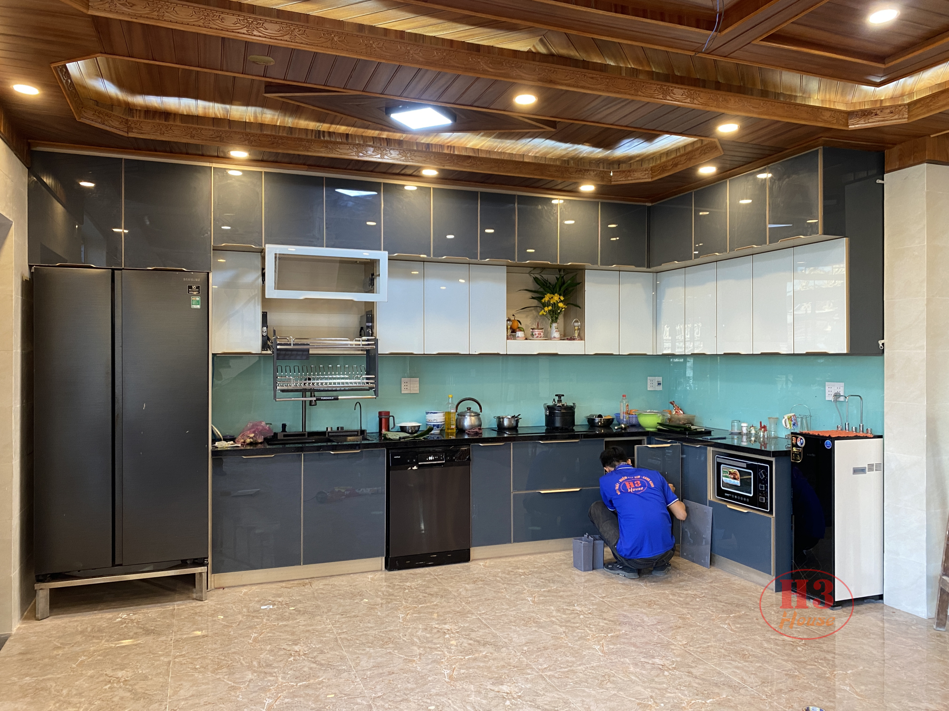 Tủ bếp nhôm hợp kim cánh kính : Toàn bộ thùng tủ làm bằng nhôm hợp kim nguyên tấm. Cánh làm bằng khung nhôm hợp kim + kính 5ly cường lực mà xám và trắng ( màu sắc theo yêu cầu của chủ nhà) . Chống nước, chống mối mọt 100%, bền, đẹp, không có hoá chất độc hại, an toàn sức khoẻ người dùng.