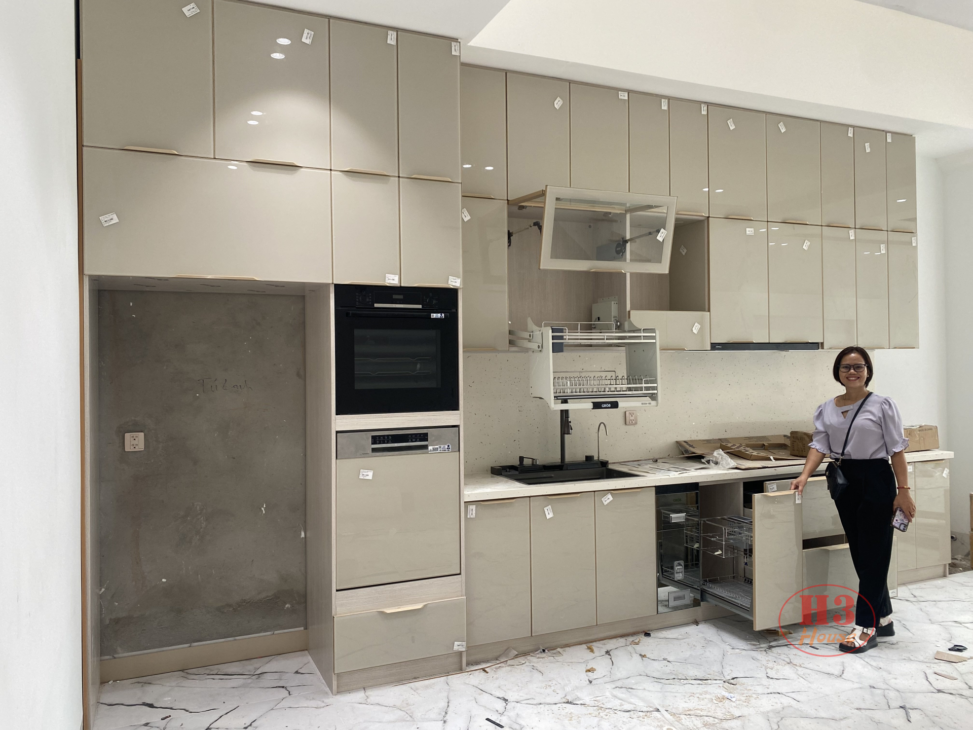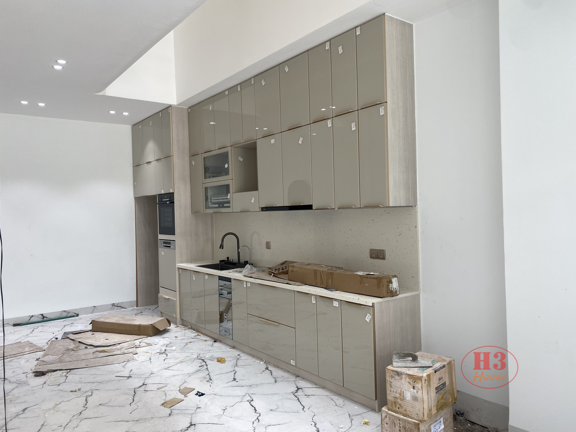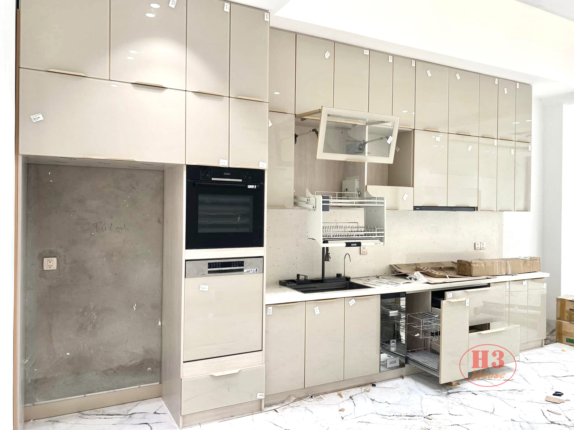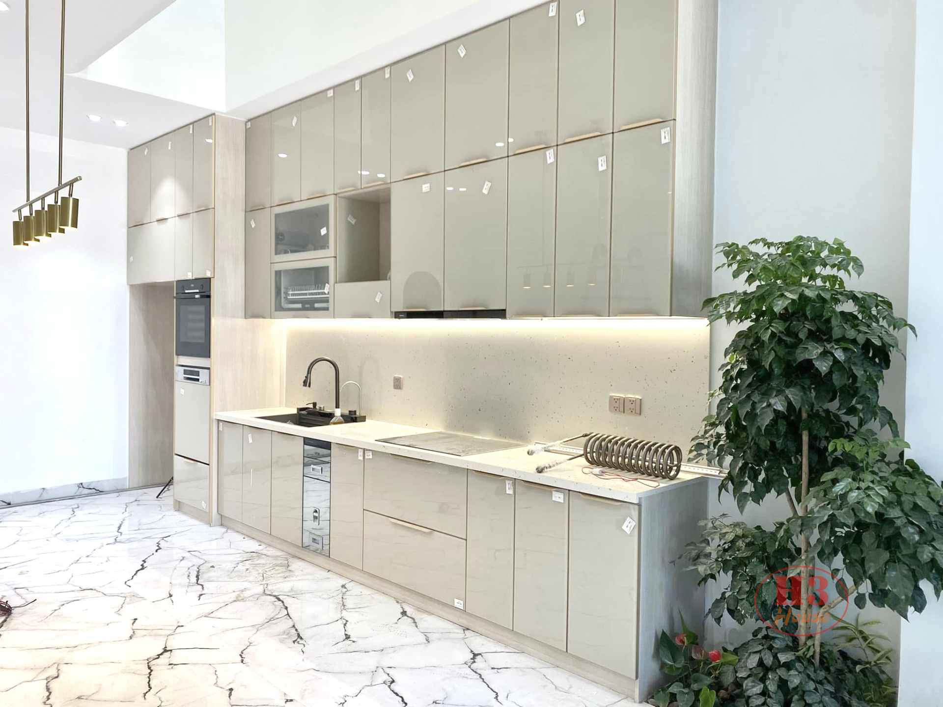 Tủ bếp nhôm hợp kim cánh kính : Toàn bộ thùng tủ làm bằng nhôm hợp kim nguyên tấm màu vân gỗ. Cánh làm bằng khung nhôm hợp kim + kính 5ly cường lực màu be nhạt ( màu sắc theo yêu cầu của chủ nhà) . Chống nước, chống mối mọt 100%, bền, đẹp, không có hoá chất độc hại, an toàn sức khoẻ người dùng.