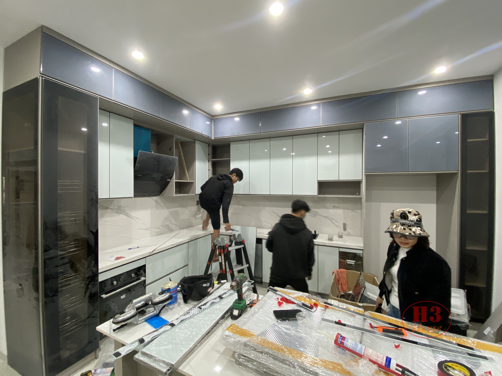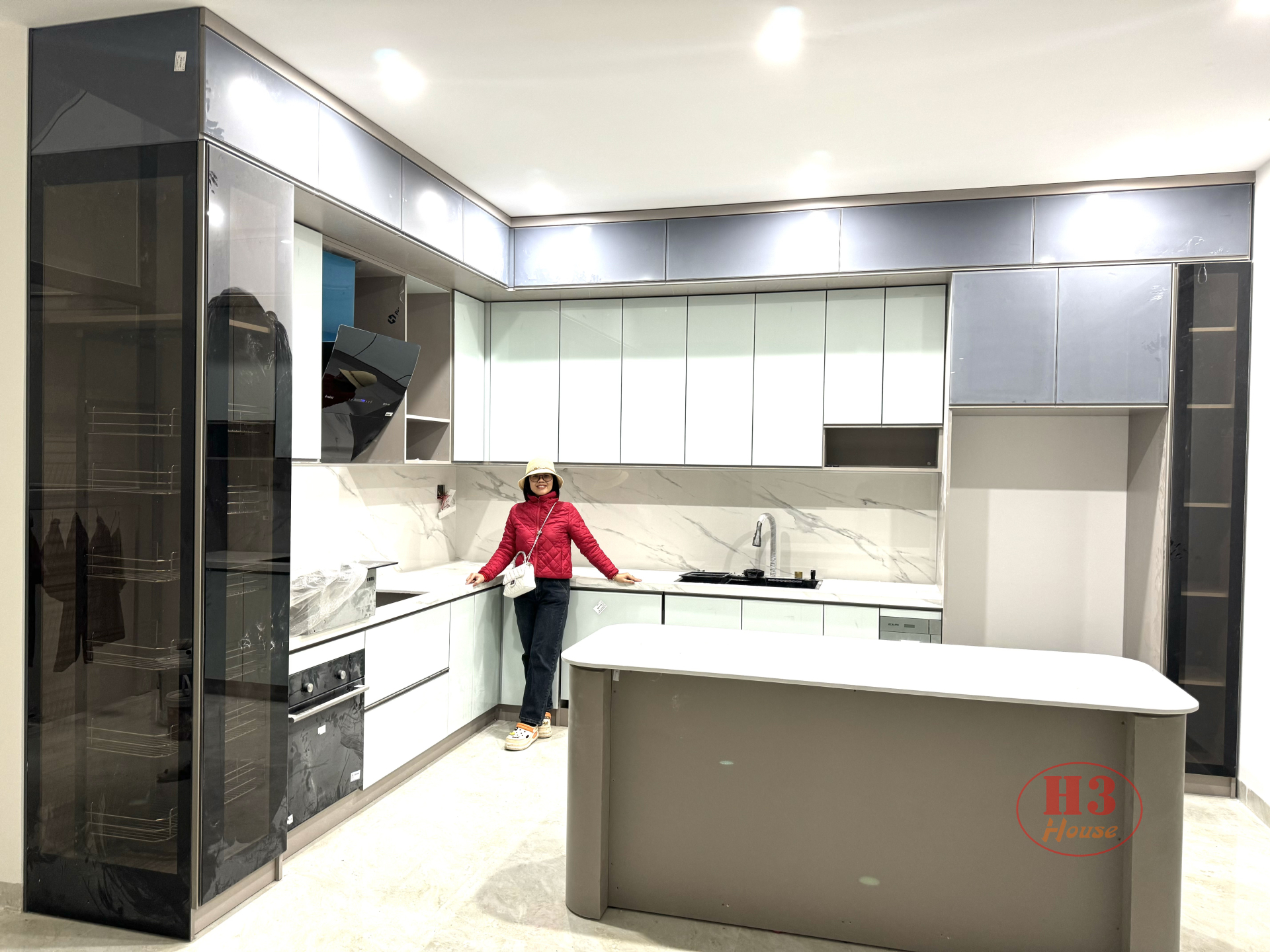Tủ bếp nhôm hợp kim cánh kính nhà anh Nam
