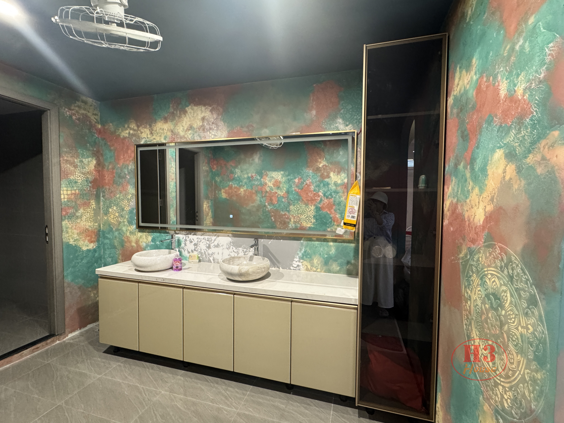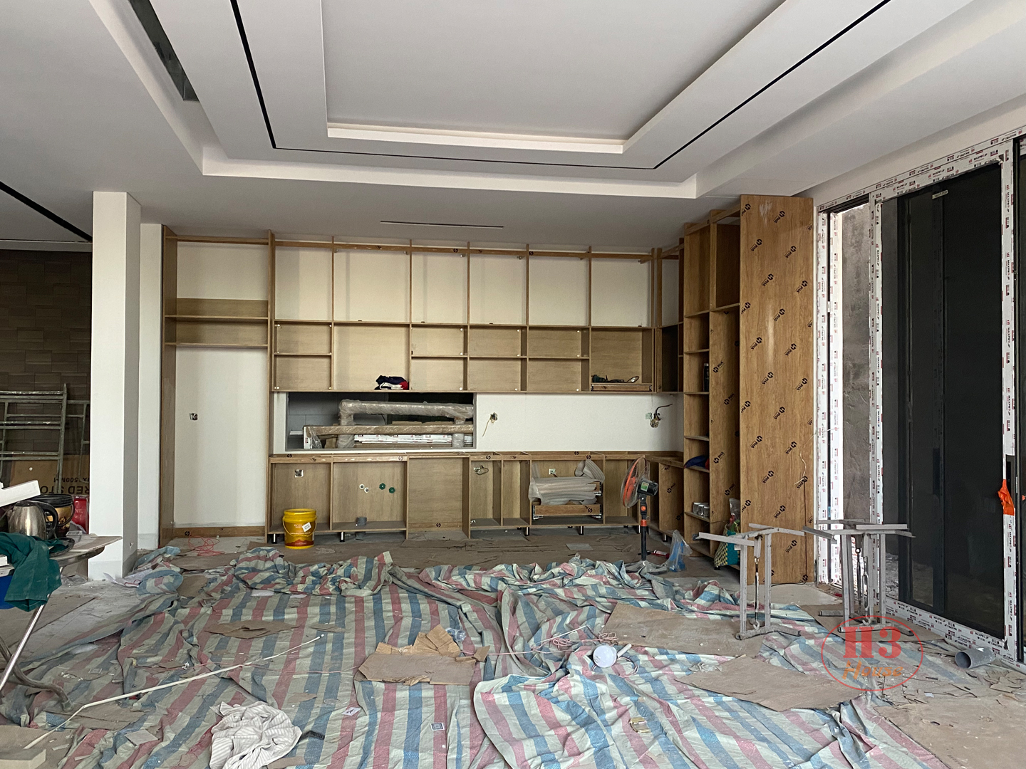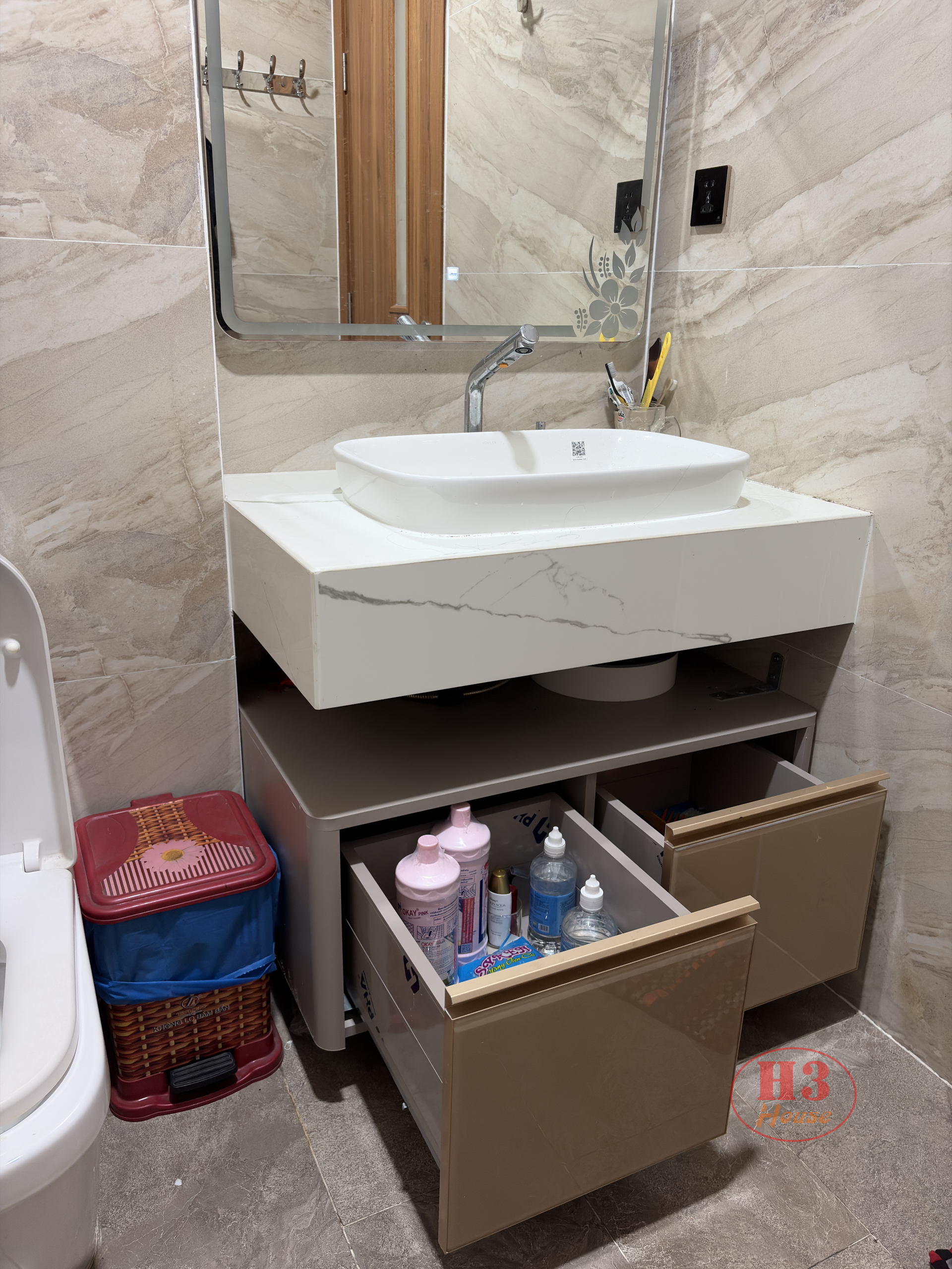 Nội thất nhôm cánh kính nhà Chị Mai: Toàn bộ thùng tủ làm bằng nhôm hợp kim nguyên tấm. Cánh làm bằng khung nhôm hợp kim + kính 5ly cường lực ( màu sắc theo yêu cầu của chủ nhà) . Chống nước, chống mối mọt 100%, bền, đẹp, không có hoá chất độc hại, an toàn sức khoẻ người dùng.